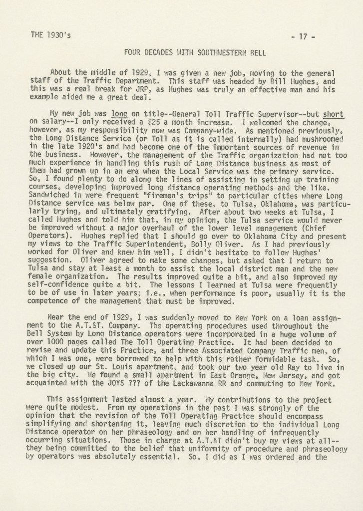 J.R. Peterson’s Four Decades with Southwestern Bell