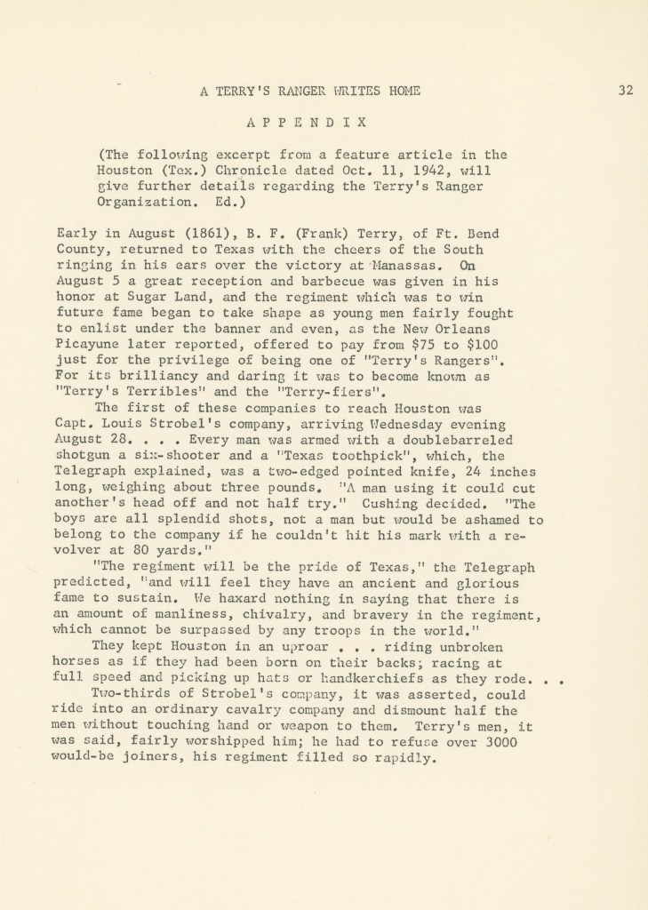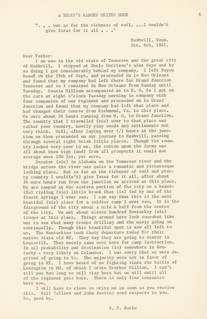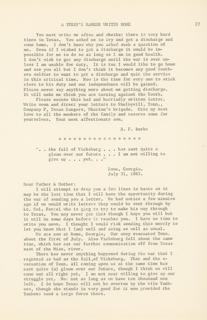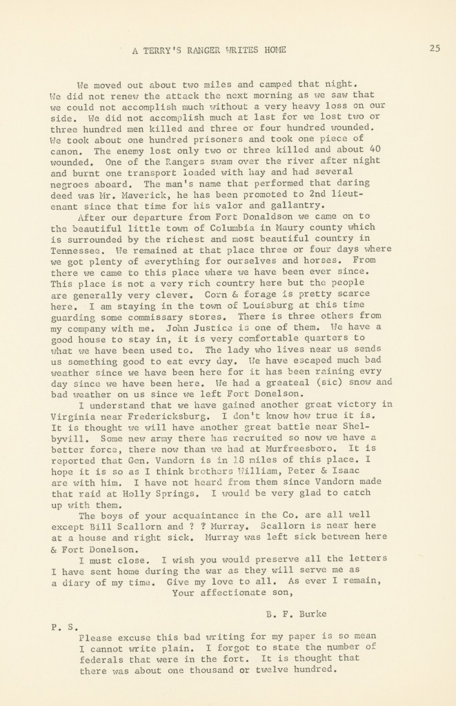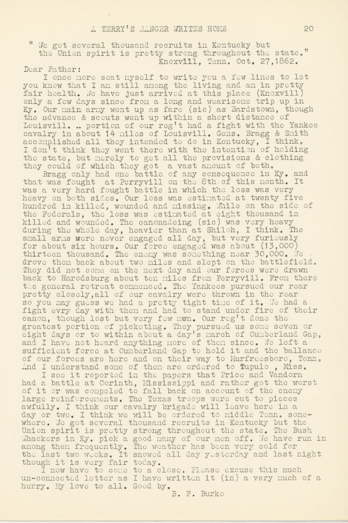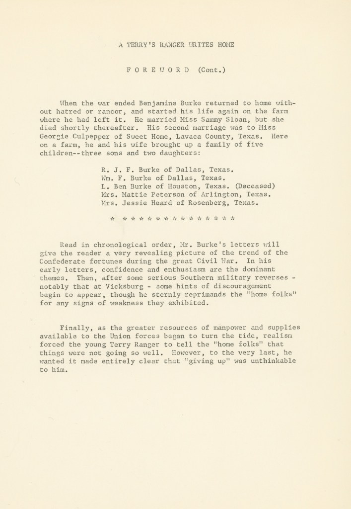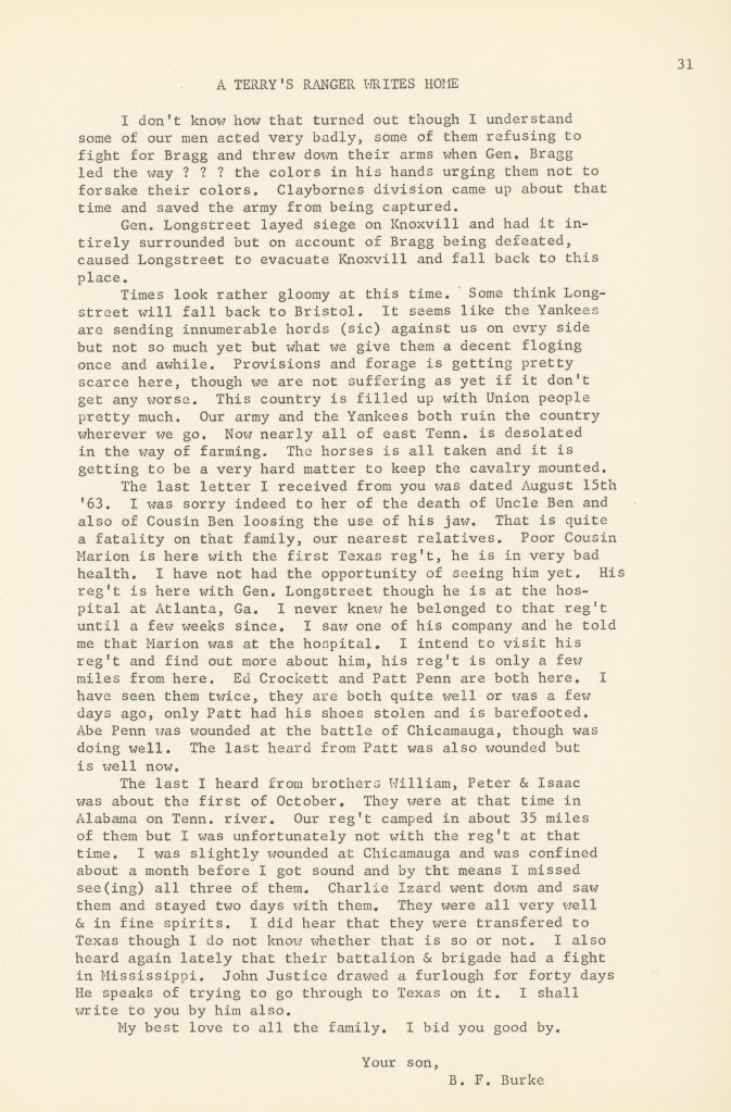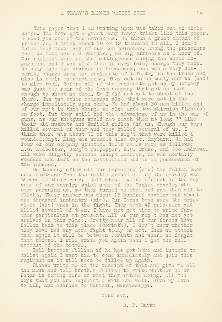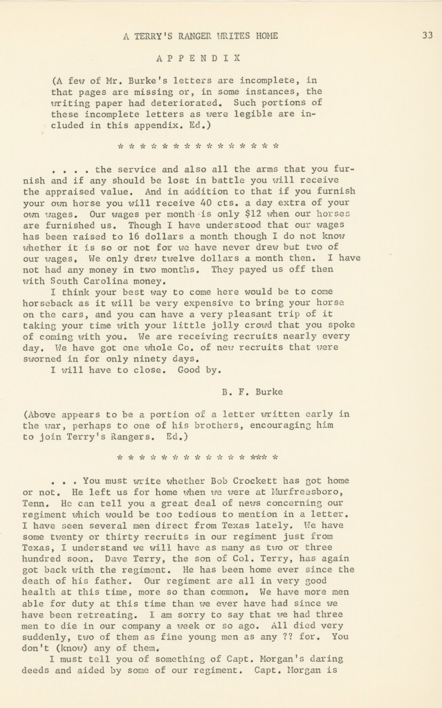 Benjamin F. Burke’s Letters in Terry’s Texas Rangers