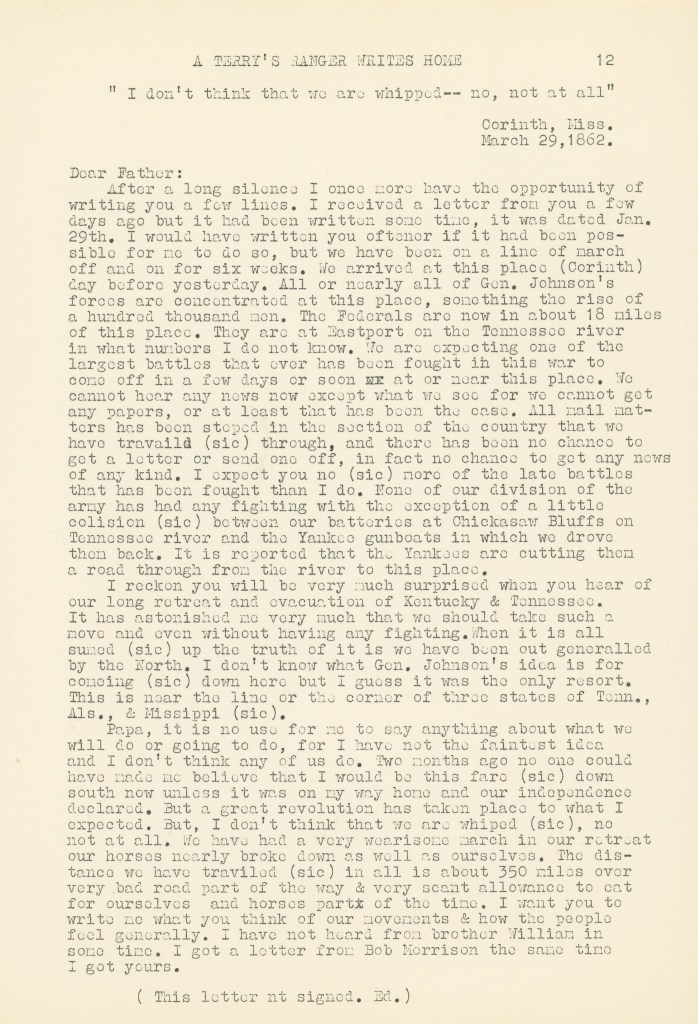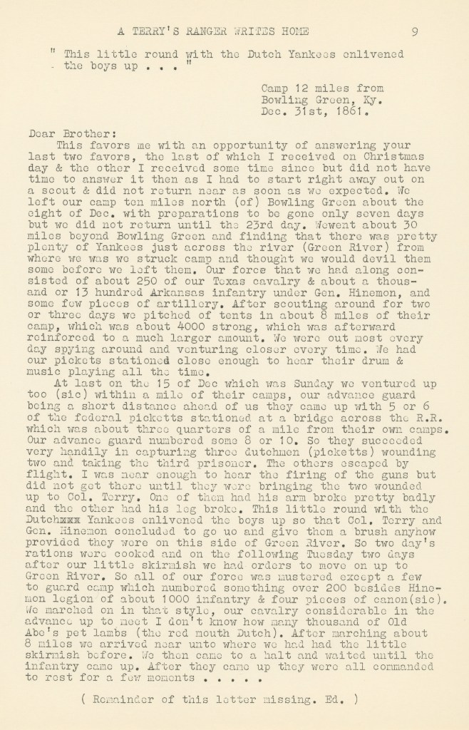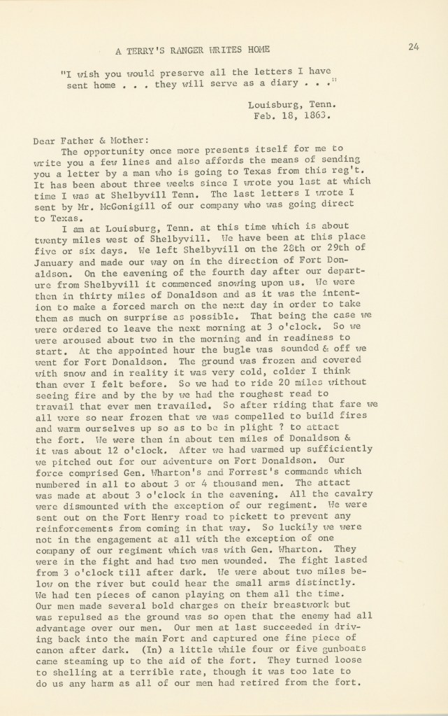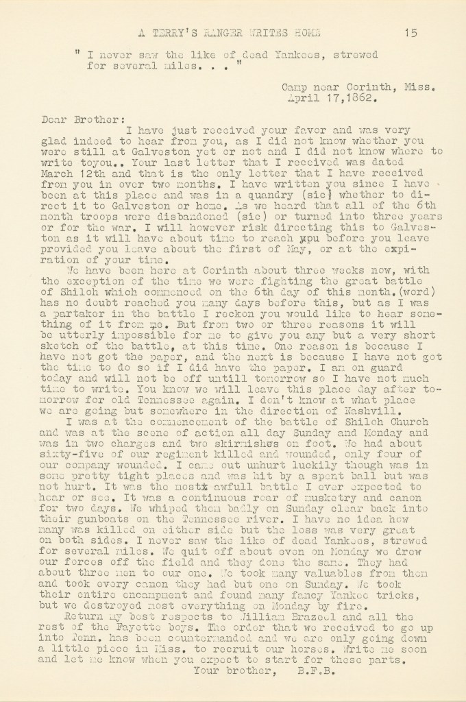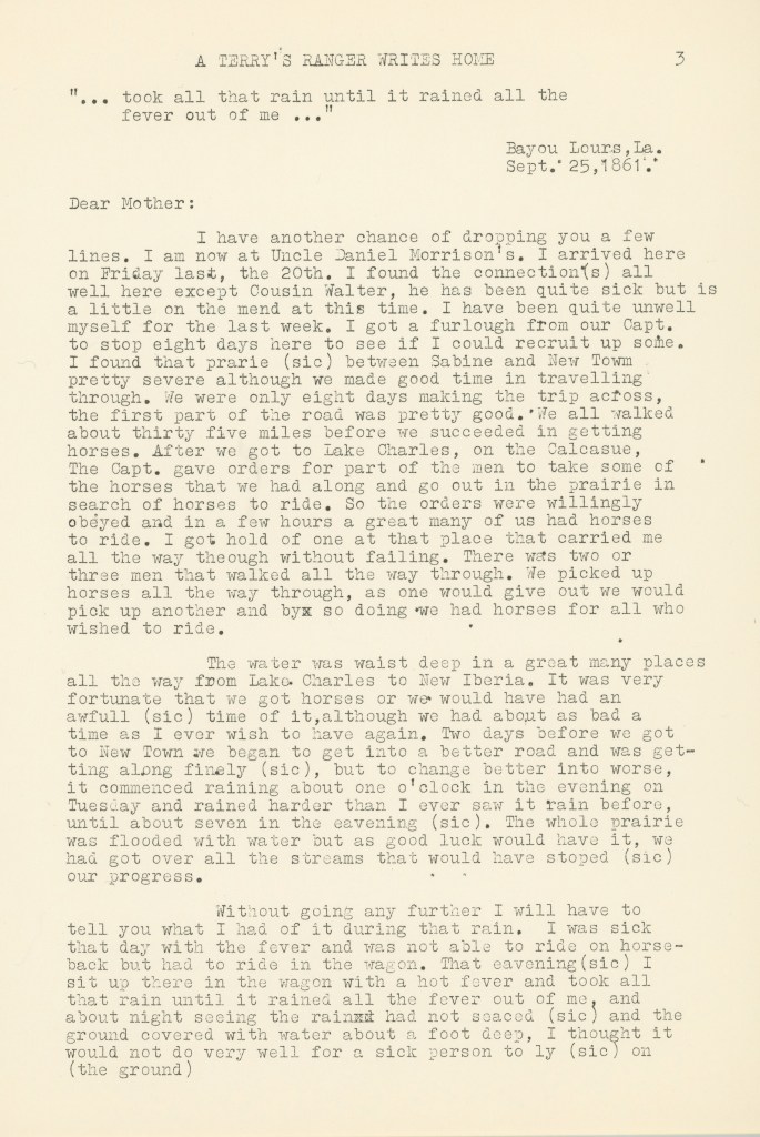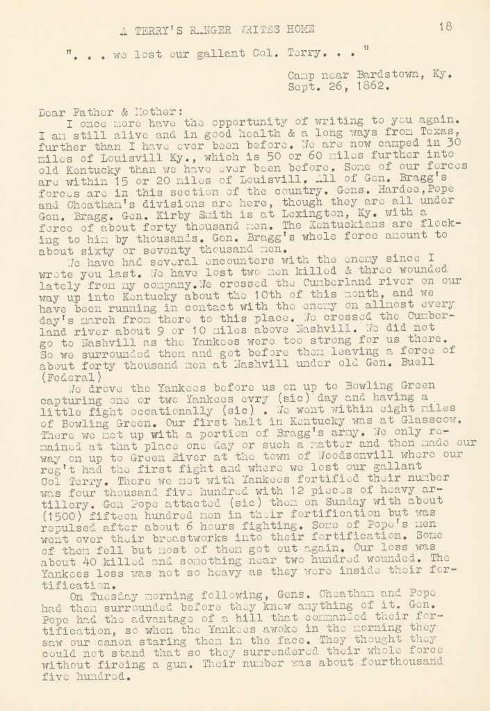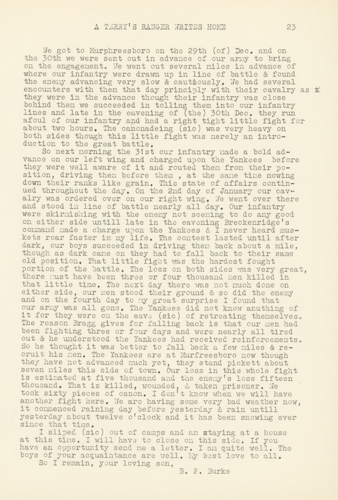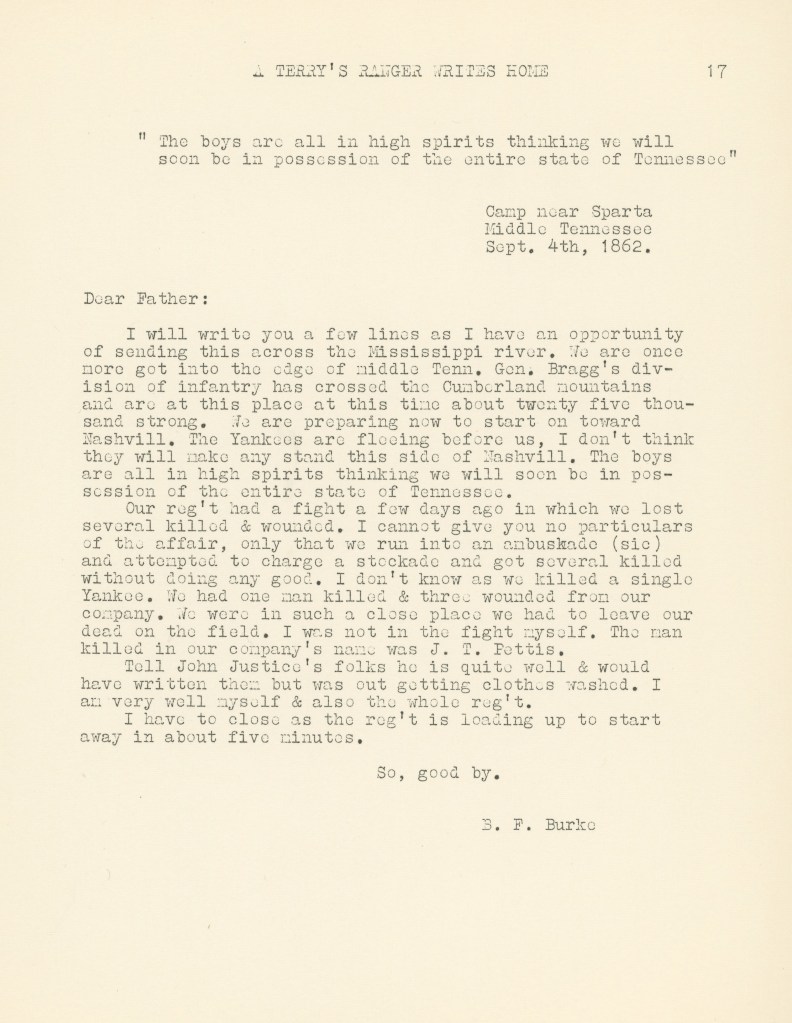 Benjamin F. Burke’s Letters in Terry’s Texas Rangers